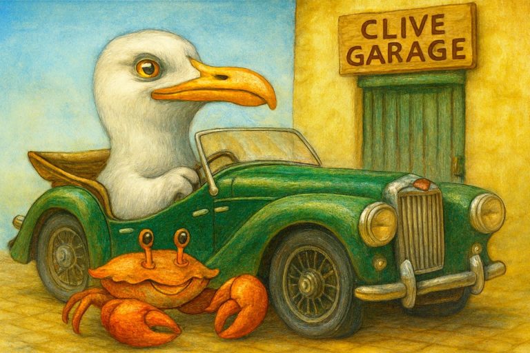 Sit down, deary. I’ve got stories that’ll make the tide blush and the gulls squawk with envy. First rule: never trust a crab named Clive. Second rule: always aim for the chip, never the napkin. Third rule… well, you’ll learn that one the hard way.”